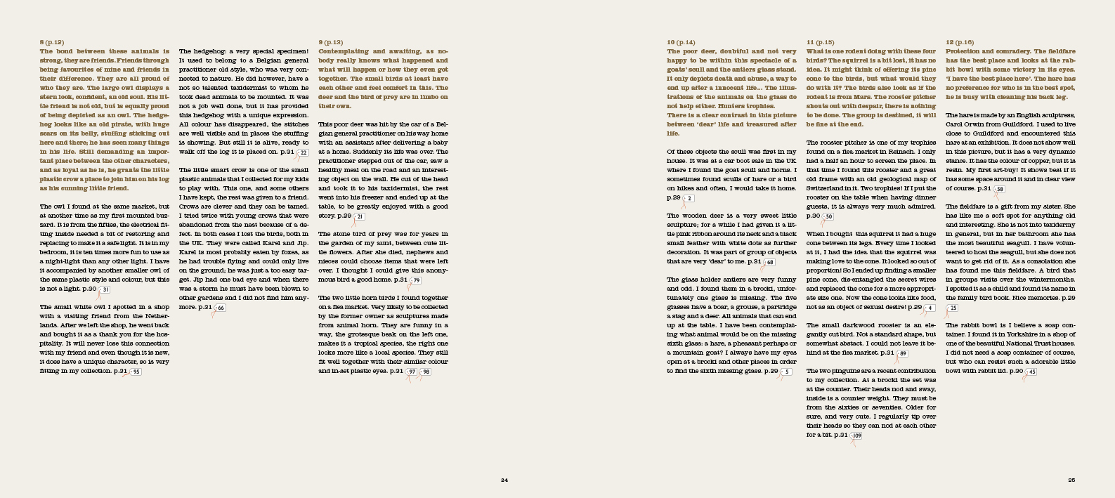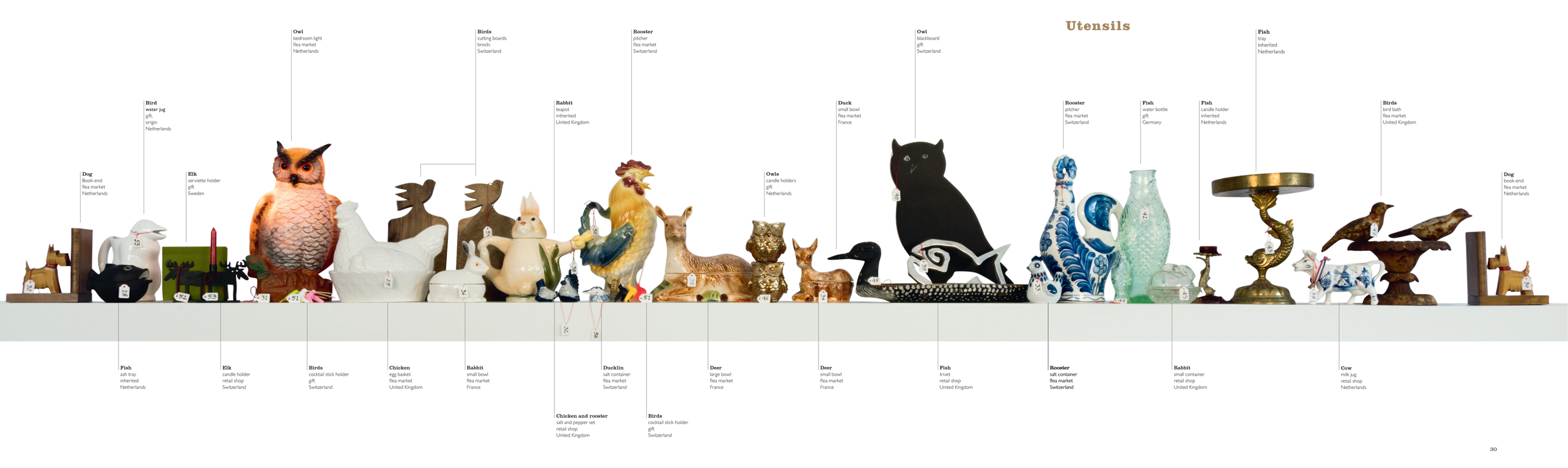In a book I have archived my collection of animals. With still life photography, a narrative and a visual register on three categories on fold-out pages. ‘Natural History’, ‘Utensils’ and ‘Decoration’.Project at the FHNW, teacher: Jinsu Ahn